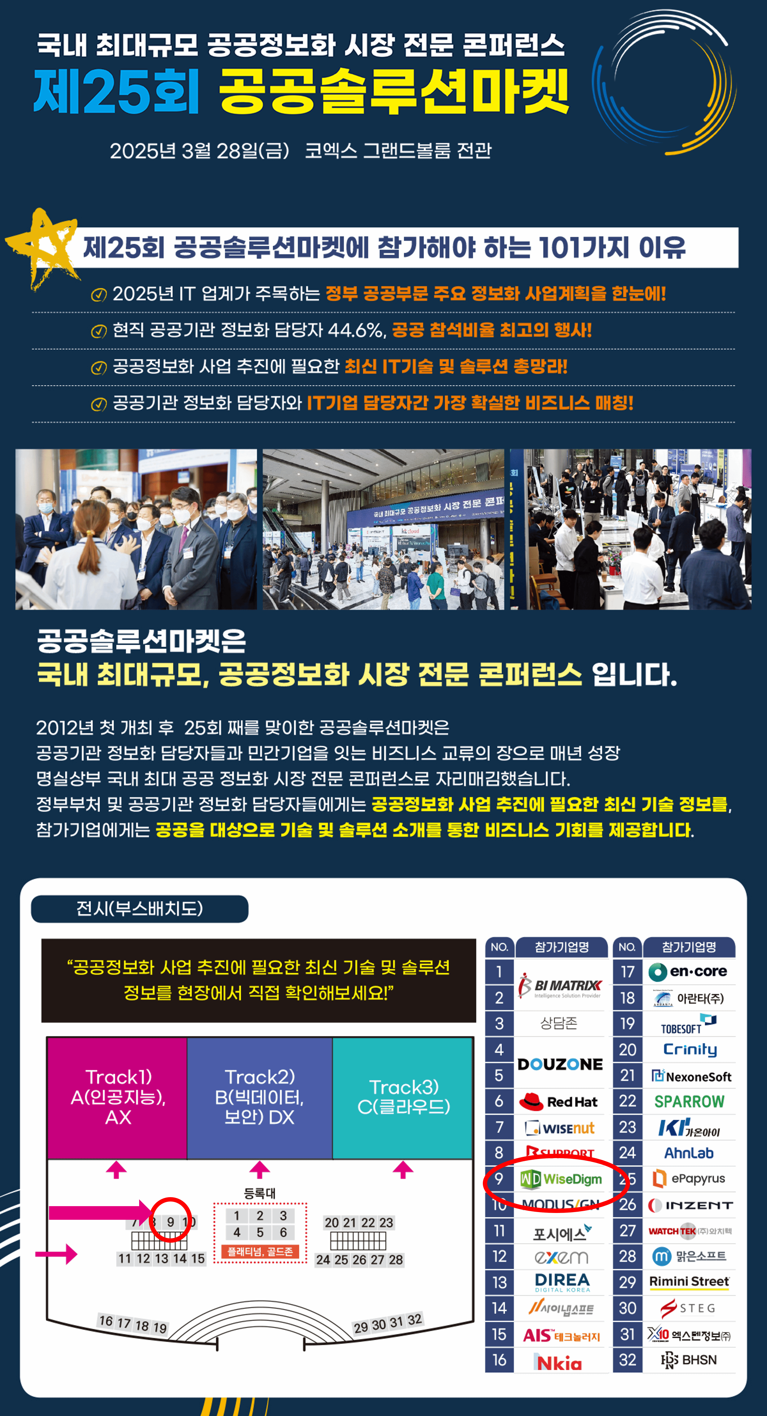 | 공공솔루션마켓 2025(3/28)에 초대합니다.(9번 부스) (0) | 2025.03.24 |